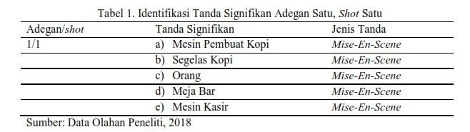 Gambar 1. Adegan Satu, Shot Satu, dari Data Olahan Peneliti, 2018